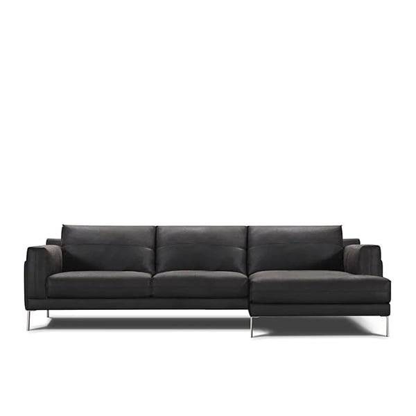 The open base leaves plenty of space under the sofa for lightness but above all it highlights the superb chrome metal legs. The result is spectacular. Give it beautiful leather and the result will be incredible. We offer it in an angle on the left or right. This sofa is also available as a 3-seater sofa, 2-seater sofa and armchair. This Black Plain Leather Corner Sofa is equipped with a very comfortable seating. It’s the perfect choice for chatting, reading, watching TV or just relaxing.