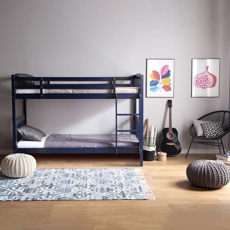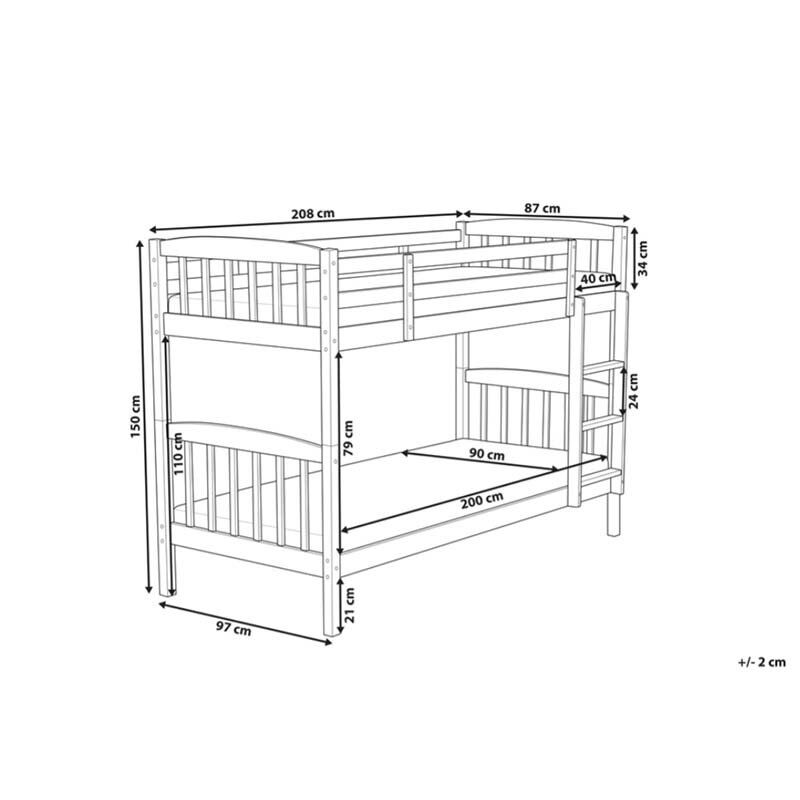 A practical high bed is the perfect combination of comfortable and inviting sleeping space for kids and young adults alike. Designed with vertical rails on the footboard and a headboard frame made of robust MDF wood, it ensures both stability and safety. The bed is a trendy and space-saving solution for all modern bedrooms. The recommended height for the top bunk mattress is less than 13 cm so that rails ensure maximum safety.