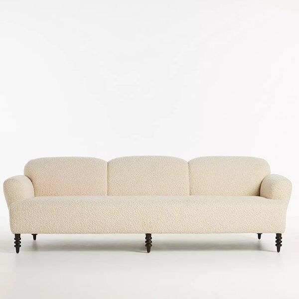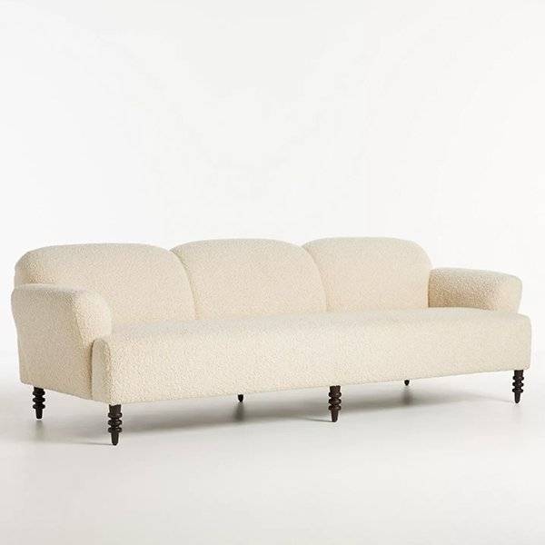The Bouclé 3 Seater Couch is a modern sofa which suits every living room. It has a classic shape to it and is incredibly comfortable to relax on. The solid wooden legs keep it looking sleek and contemporary. Its clean lines and slick design make it a real focal point for any modern living space.