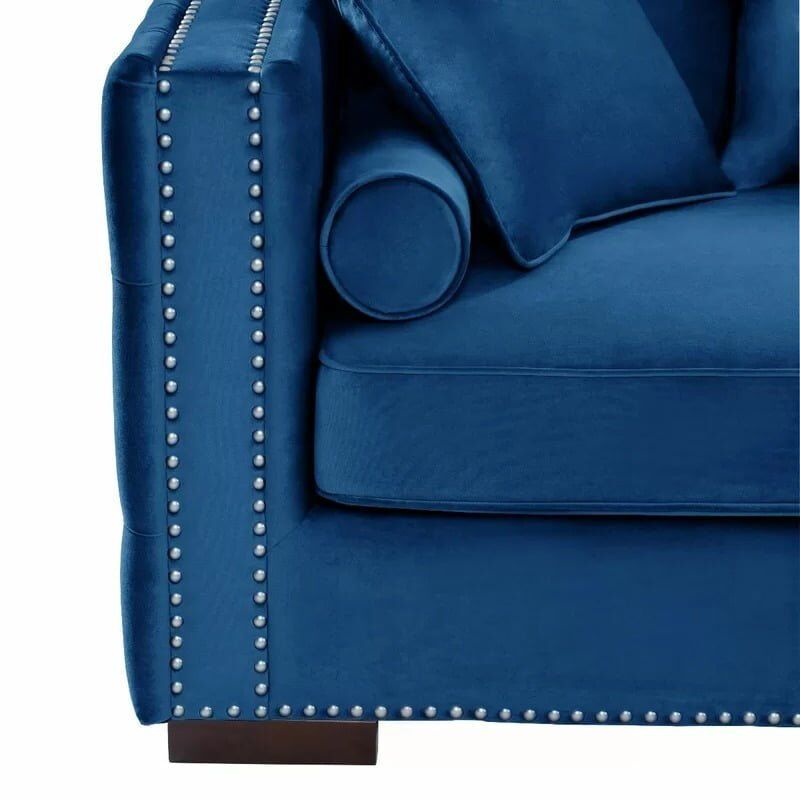 This Button Tufted Corner Velvet Sofa offers both superb comfort and a chic aesthetic. The range gives its distinctive look by the deep button, quilted detail to the outside arms. It features a scatter cushion back for ultimate comfort. The rich velvet upholstery finished with Nail head trim detail completes the luxurious look.