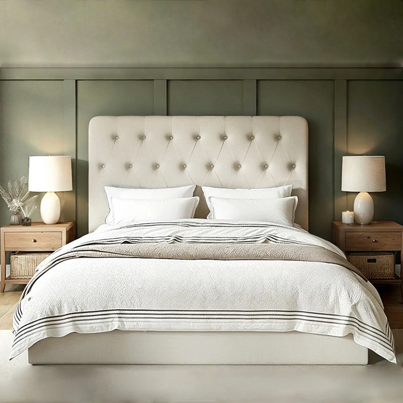 The Chesterfield Buttoned Headboard Bed in luxurious beige linen is a stylish and practical choice for those seeking a classic statement piece with hidden functionality. With its Chesterfield buttoned headboard and linen upholstery, this bed is bold and elegant.