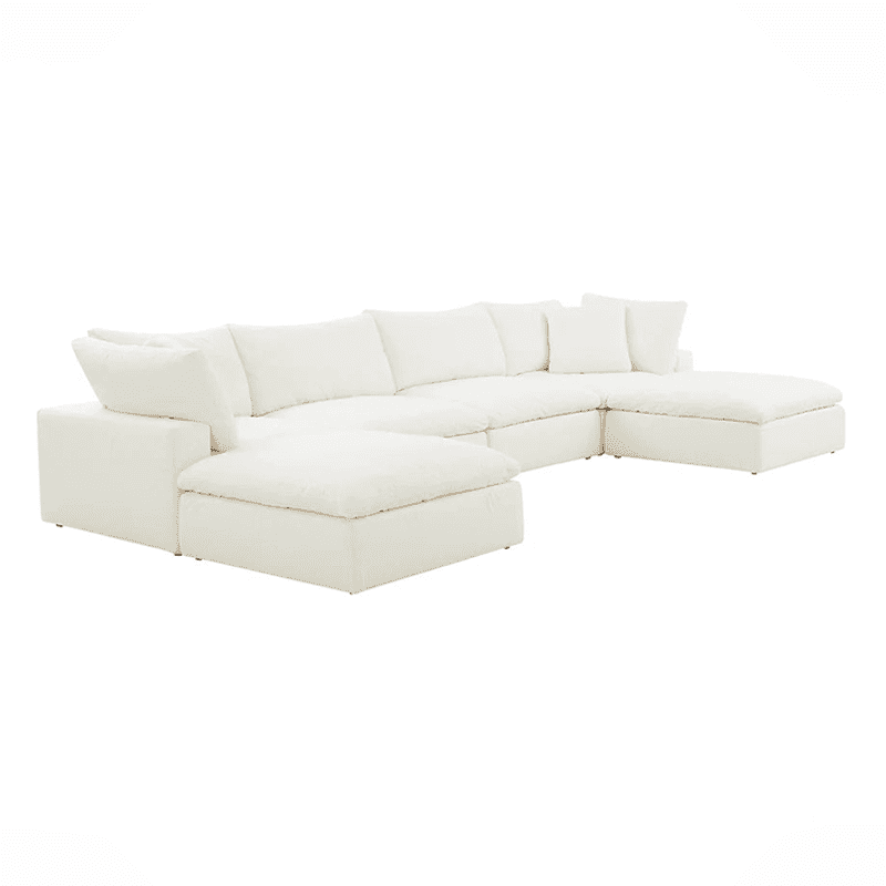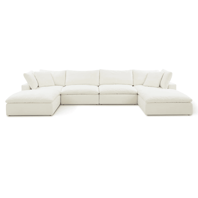Cloud U Shape Sofa with Double Footstool Set from Dura Decor – where luxury meets functionality. This versatile ensemble offers ample seating space and two matching footstools for ultimate relaxation and comfort. Enhance your comfort with a cozy footstool or take it up a notch with a matching console. The options are limitless – unleash your imagination and start designing your perfect sofa today!