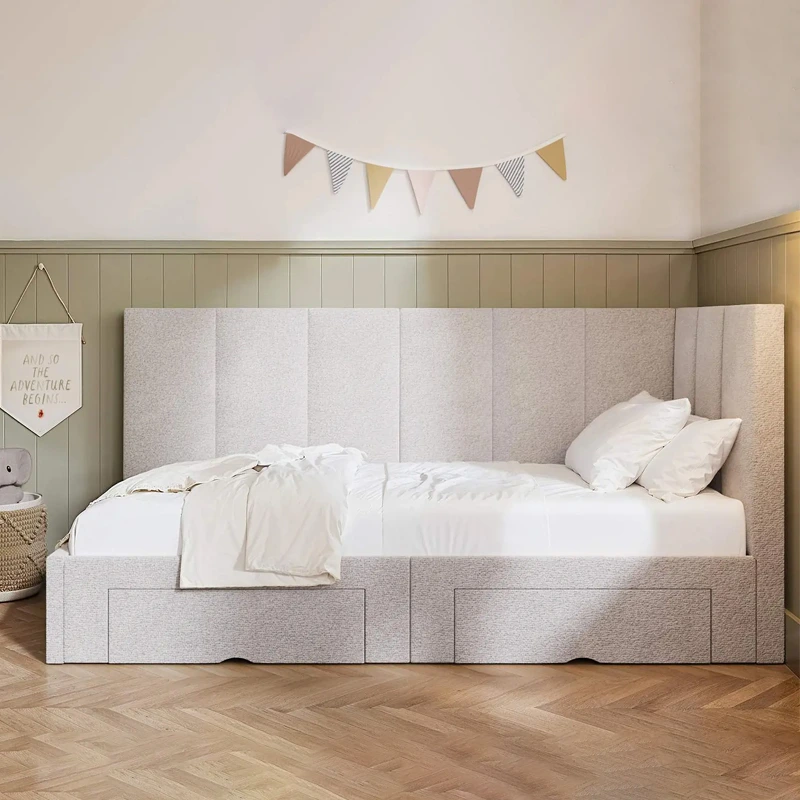 With its distinctive corner headboard and soft velvet finish, the corner single bed creates a cosy, inviting atmosphere while offering built-in drawers to keep your space tidy and organized. Available in gray, beige, white, Green, or Blue, it blends effortlessly with a wide range of decor styles.