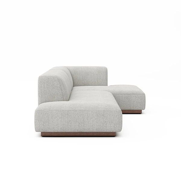 The Elegance Sectional Chaise Sofa collection combines contemporary lines and comfort. Its welcoming silhouette and balanced architecture without an armrest have been designed to maximize the surface area of the seat. Slightly raised, it seems to float above the ground, despite its imposing volume.