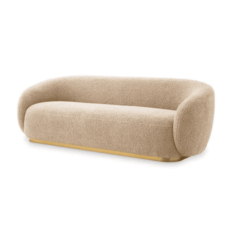 Elevate your interior with the sophisticated Elegant Boucle Couch, a stunning piece blending craftsmanship with modern comfort. The Soft boucle fabric is complemented by a brushed brass base, including 2 cushions for a touch of luxury in your space.