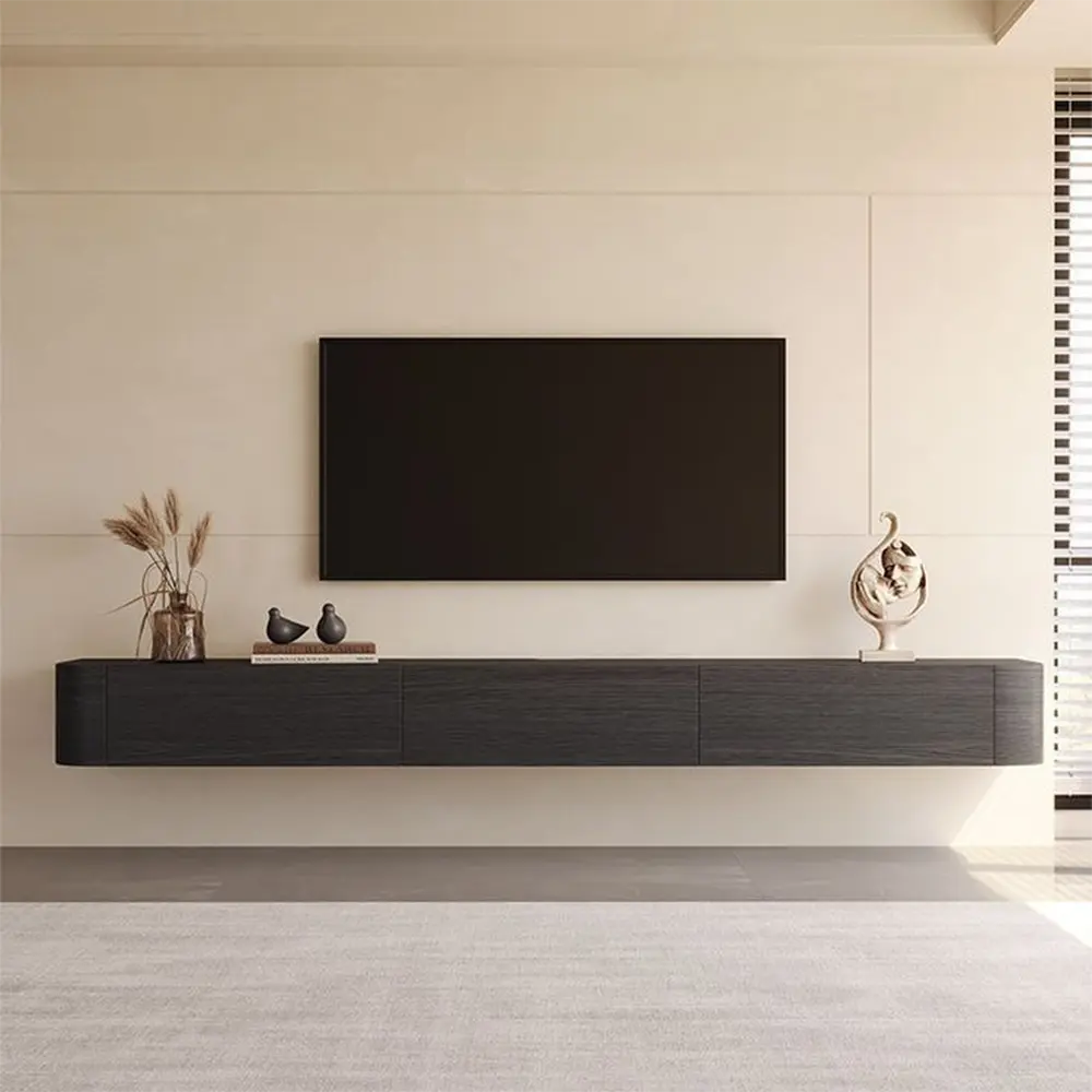 Engineered for durability and stability, this floating TV cabinet mounts securely to the wall, offering strong support for your entertainment setup. The elevated design not only enhances airflow around electronic devices but also makes cleaning effortless—keeping your living area neat and harmonious.