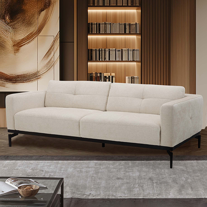 Elevate your space with our sleek Ivory 3 Seater Couch, in classic ivory Linen fabric. Crafted with meticulous attention to detail, this range boasts timeless seam detailing along with plush back and seat cushions. Plus, discover its hidden gem: adjustable headrests that offer the whole family enhanced comfort and support.