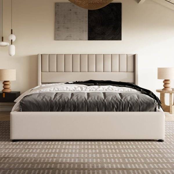 The vertical striped design of the headboard adds a creative touch to the design. The curved side bar of the headboard is both aesthetic and practical, as it prevents the mattress from sliding.