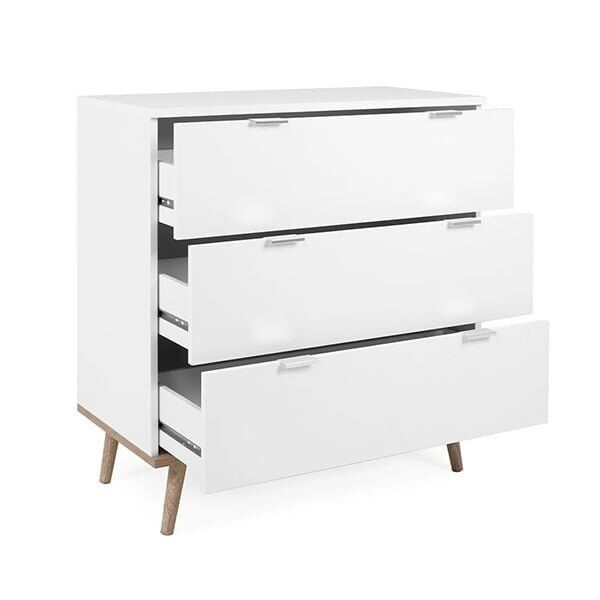 The Modern Chest Of 3 Drawers is perfect for storing your bedroom or living room! You will like: its design, its storage capacity and the finish. Cozy Chest Of Drawers is equipped with 3 drawers, 2 handles per drawer.