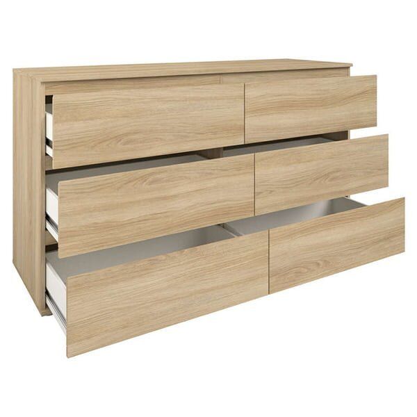 Solve storage woes with a splash of contemporary style using this Oak 6 Drawer Sideboard Storage! The 6 Chest Of Drawers features a streamlined silhouette and clean finish for a minimalist look. Ideal for storing everything from clothing to media to electronics and more. This Chest is available in a range of finishes to suit your existing decor. Alongside this beautiful piece, there are several other products available within this amazing range. Manufactured from high-quality materials, we are sure that this Chest set will serve you well for years to come. Delivered flat packed for ease of transportation to your room of choice. Concise and accurate assembly instructions are provided.