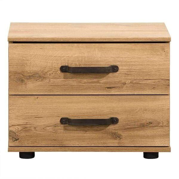 The storage is made of Melamine MDF in oak. Equipped with two drawers allowing you to store your things. You easily put an alarm clock, your cell phone and a book on the tray. With the help of this pretty bedside table, equipped with low legs, you can quickly give a pleasant and warm atmosphere to your bedroom.