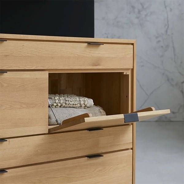 The Oak Chest Of Drawers in MDF oak, perfect for storing your bedroom or living room! You will like: its design, its storage capacity and the finish. This Chest Of Drawers available in your choice of over 50+ Color options.