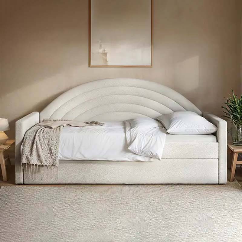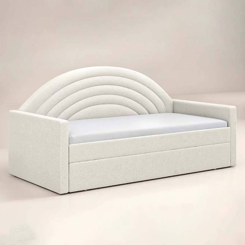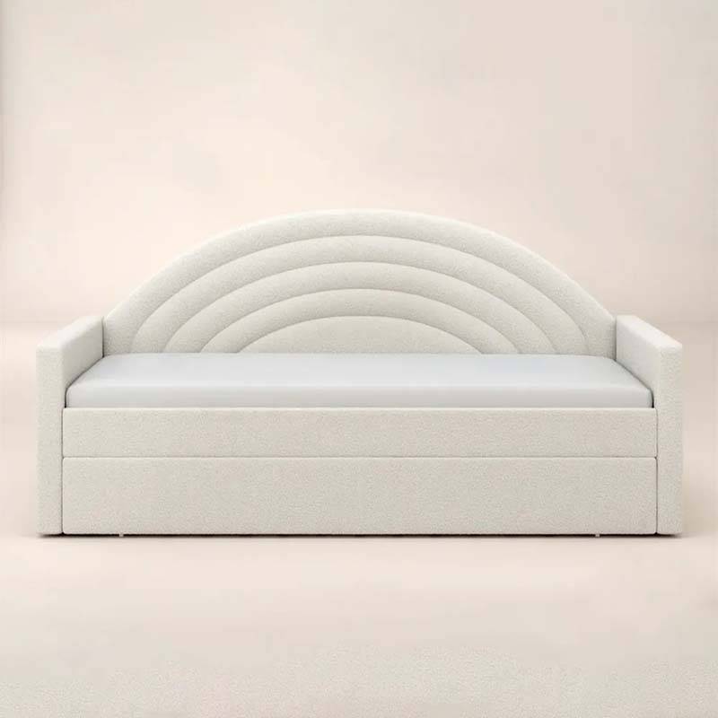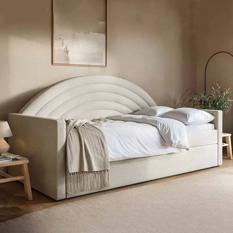 Create a cosy and stylish guest space with the Rainbow Day Bed with Trundle. Designed with both aesthetics and practicality in mind, this bed features a charming curved ribbed panel design in a luxurious teddy fabric finish. Its soft beige tone and inviting texture make it a timeless addition to any bedroom or multi-purpose space. This single guest bed includes a pull-out trundle that offers extra sleeping space without taking up additional room – ideal for sleepovers or overnight guests. With simple self-assembly and durable construction, the Rainbow Day Bed is as functional as it is beautiful.