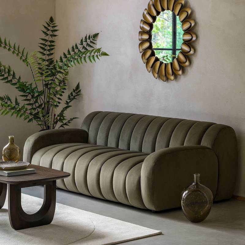 This Ridged 3 Seater Modern Sofa will bring a chic and sophisticated retro charm to your living room. The sofa will make a bold statement with an eye catching ridged design bringing an unusual upholstered look. This cool designed sofa will add sleek curved shapes creating an eye catching centre piece to your room. The neutral cream shape will match most peoples interiors.