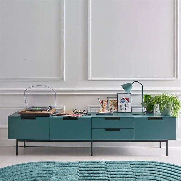 The Treno TV Stand range at first glance with its geometric design, its black metal base and its generous storage capacity. Resolutely contemporary! A set that will bring extra soul and warm up the atmosphere in your living room. You can place it wherever you want, as it is easy to move, adding a wonderful aesthetic touch to your home.