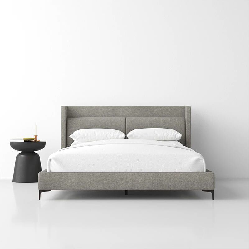 The Winged Padded Headboard Bed is a lovely contemporary bed that can fit almost any style. The upholstery add cozy charm to any bedroom. The headboard has a cushion look and offers wings for a feeling of added privacy. Black metal accents offset the soft finish of this luxurious bed. The texture and style of this piece make it perfect for your industrial, farmhouse, or mid century home.